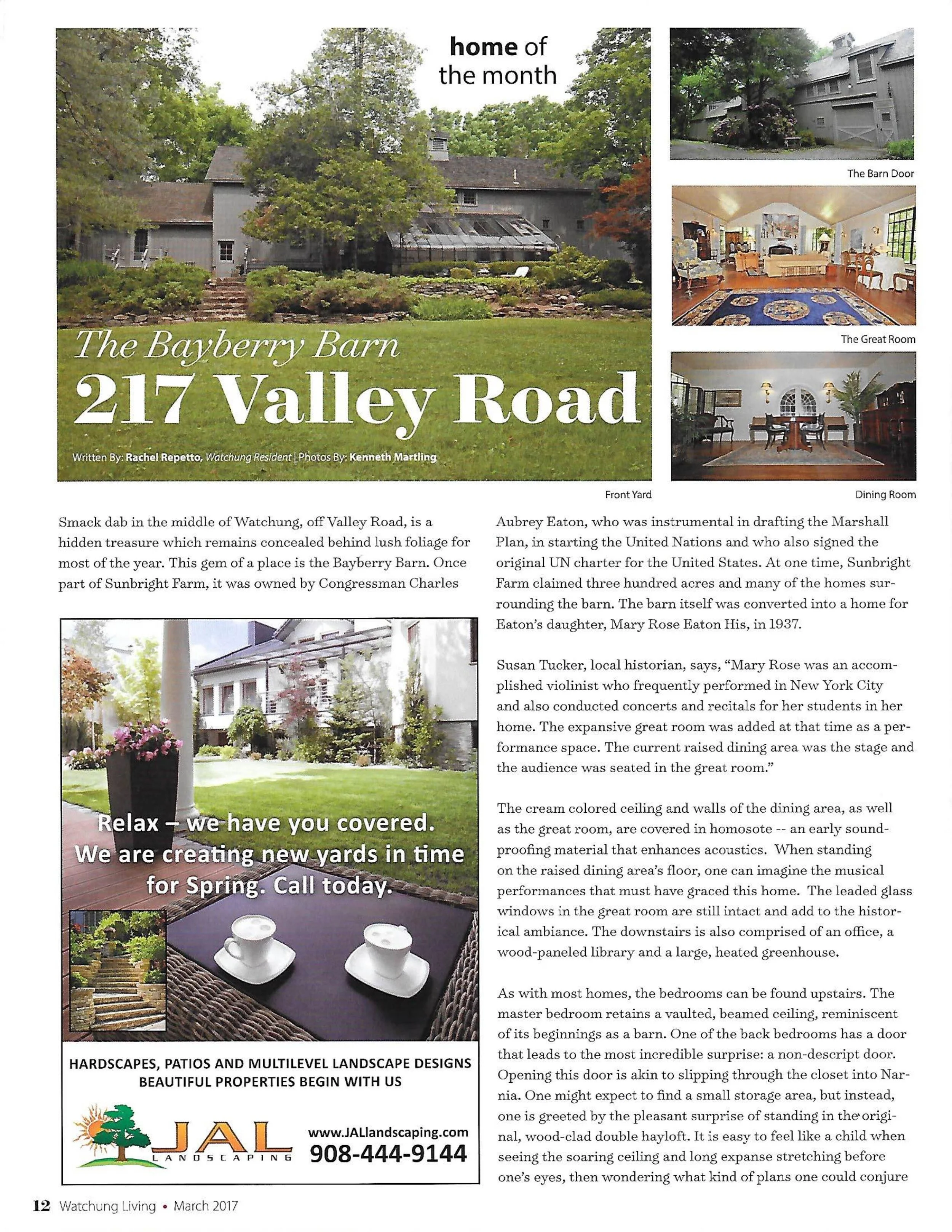 Feature Writer and Photographer for Watchung Living. In each piece, visual storytelling via crafted words enhanced the human connection. Authored under the pen names of Rachel Repetto and Rachel McRae.