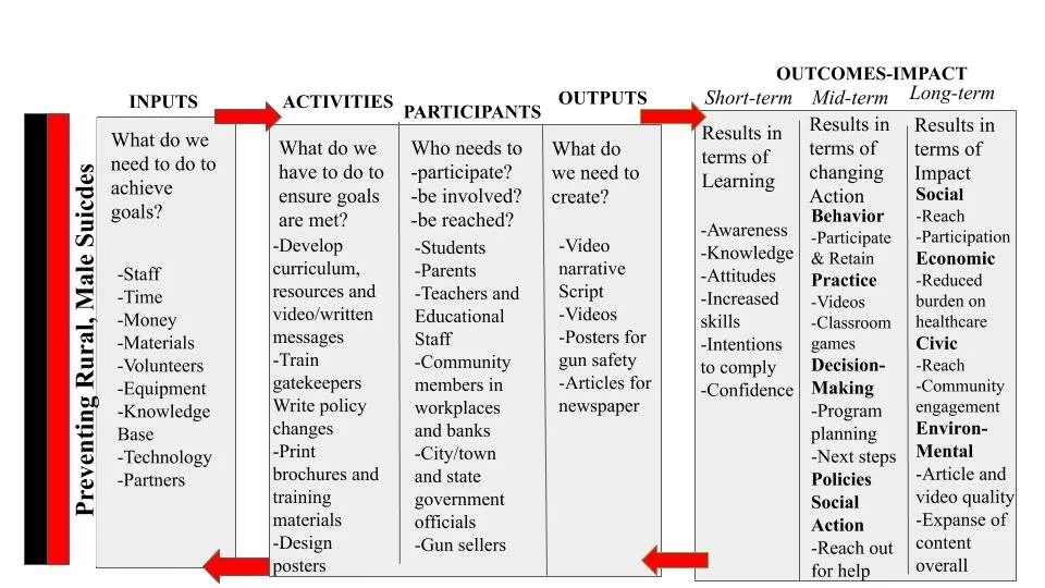 Logic Model for Strategic Communication for Rural males, ages 35-65, at Risk of Suicide
